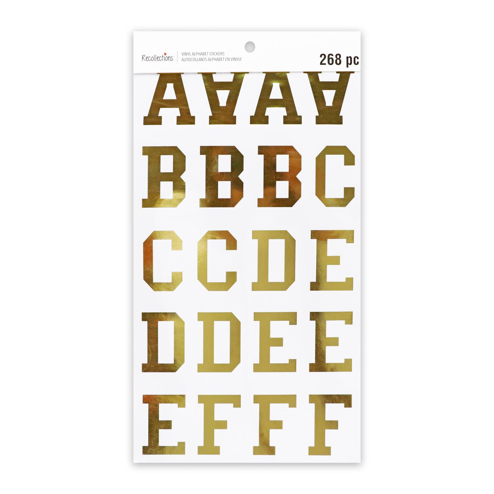 Feuilles d’autocollants alphabet en vinyle doré de Recollections