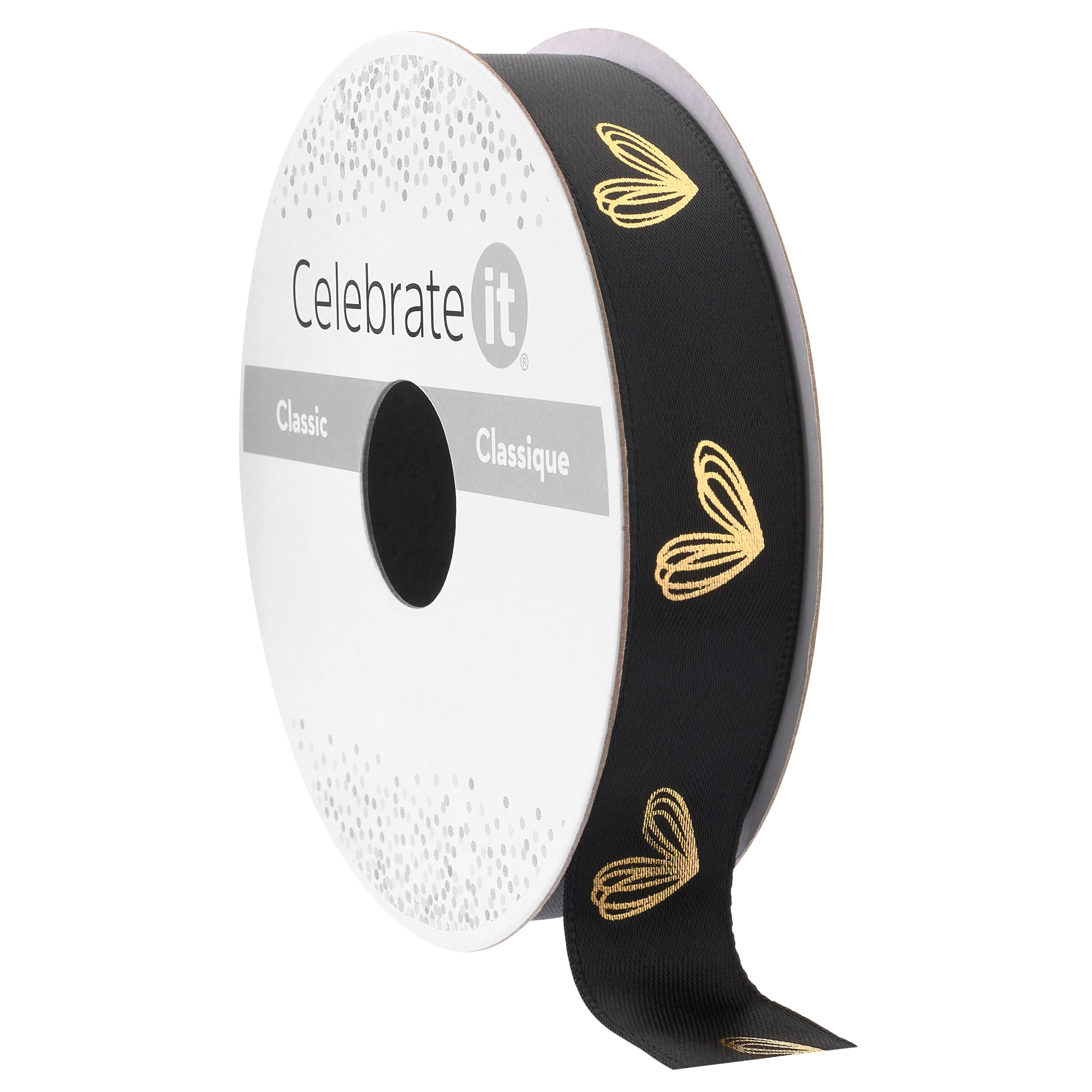 5/8" x 7yd. Black & Gold Heart Ribbon by Celebrate It™ Classic