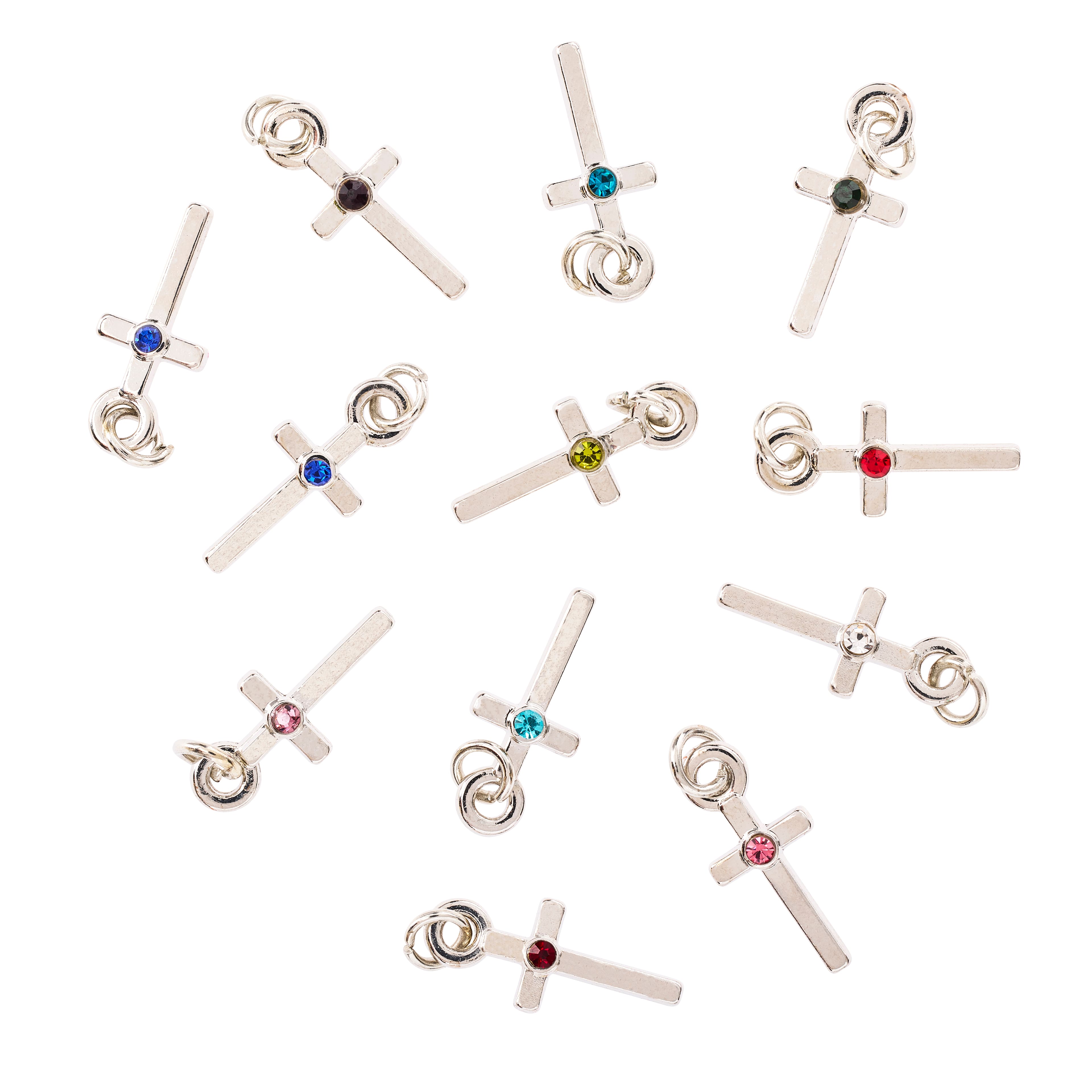 Charmalong™ Rhodium Cross Birthstone Charms by Bead Landing™