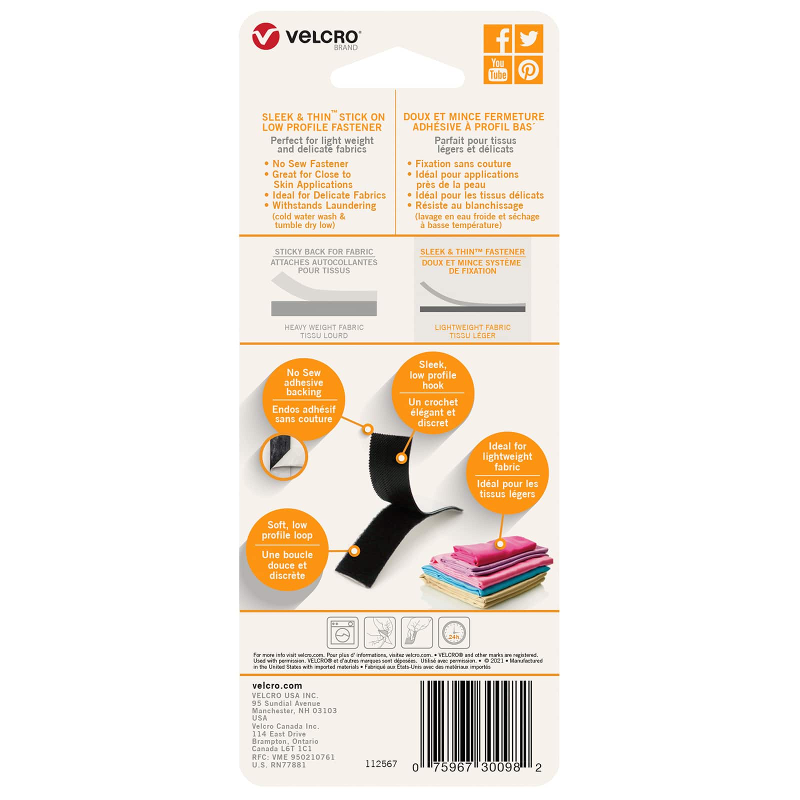 VELCRO® Brand Sleek & Thin™ Stick On Black Fastener Roll